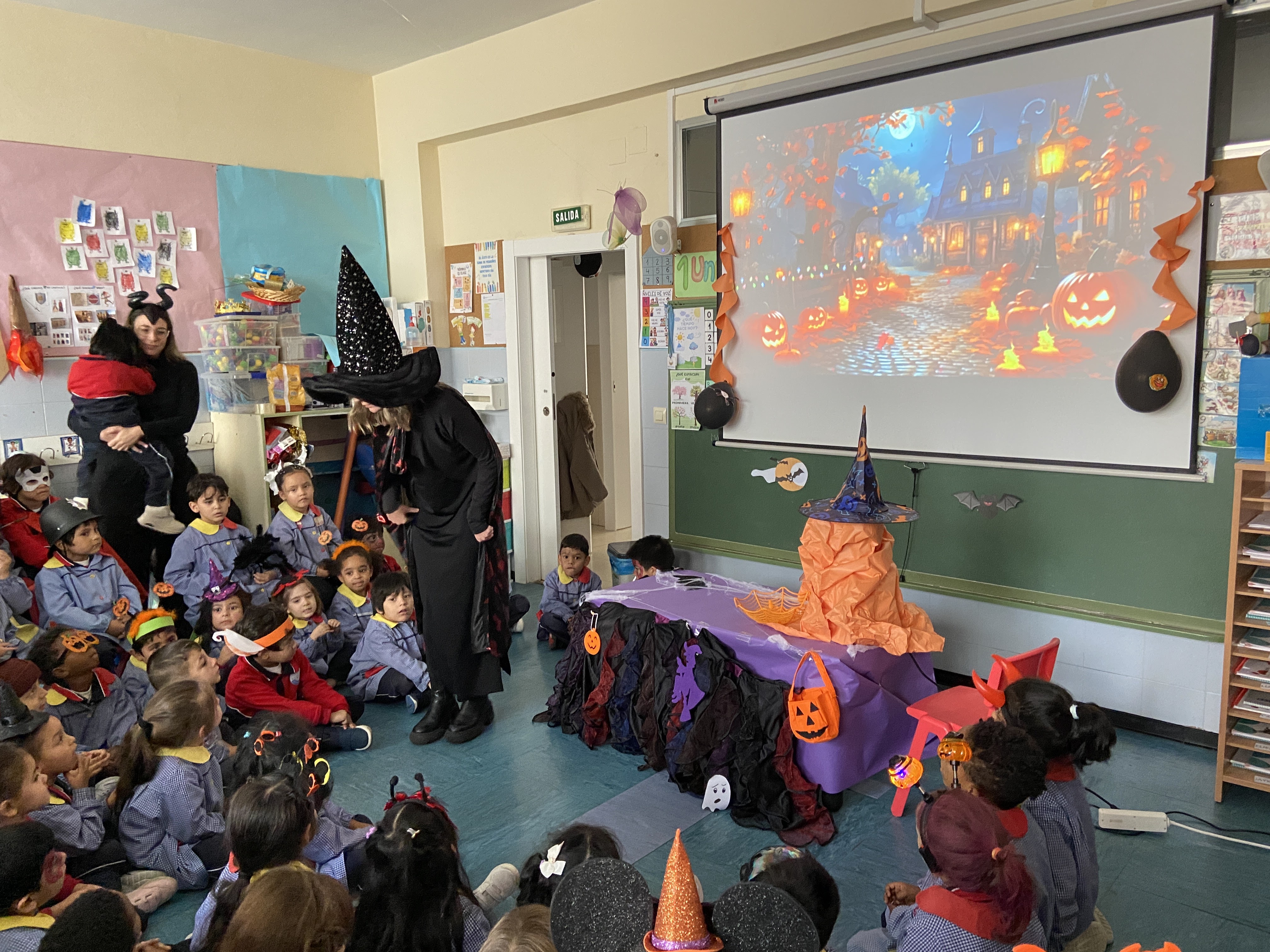 1) CELEBRACIÓN DE HALLOWEEN: los niñas y niñas de Ed. Infantil, ambientados para la ocasión, recibimos a una Bruja muy locuela que nos hizo pociones asombrosas. Realizamos varios trabajos manuales y los de 5 años realizaron un spider-taller de cocina. En las Redes Sociales podéis encontrar más fotos y videos de ese día. Por aquí os dejamos unas poquitas: